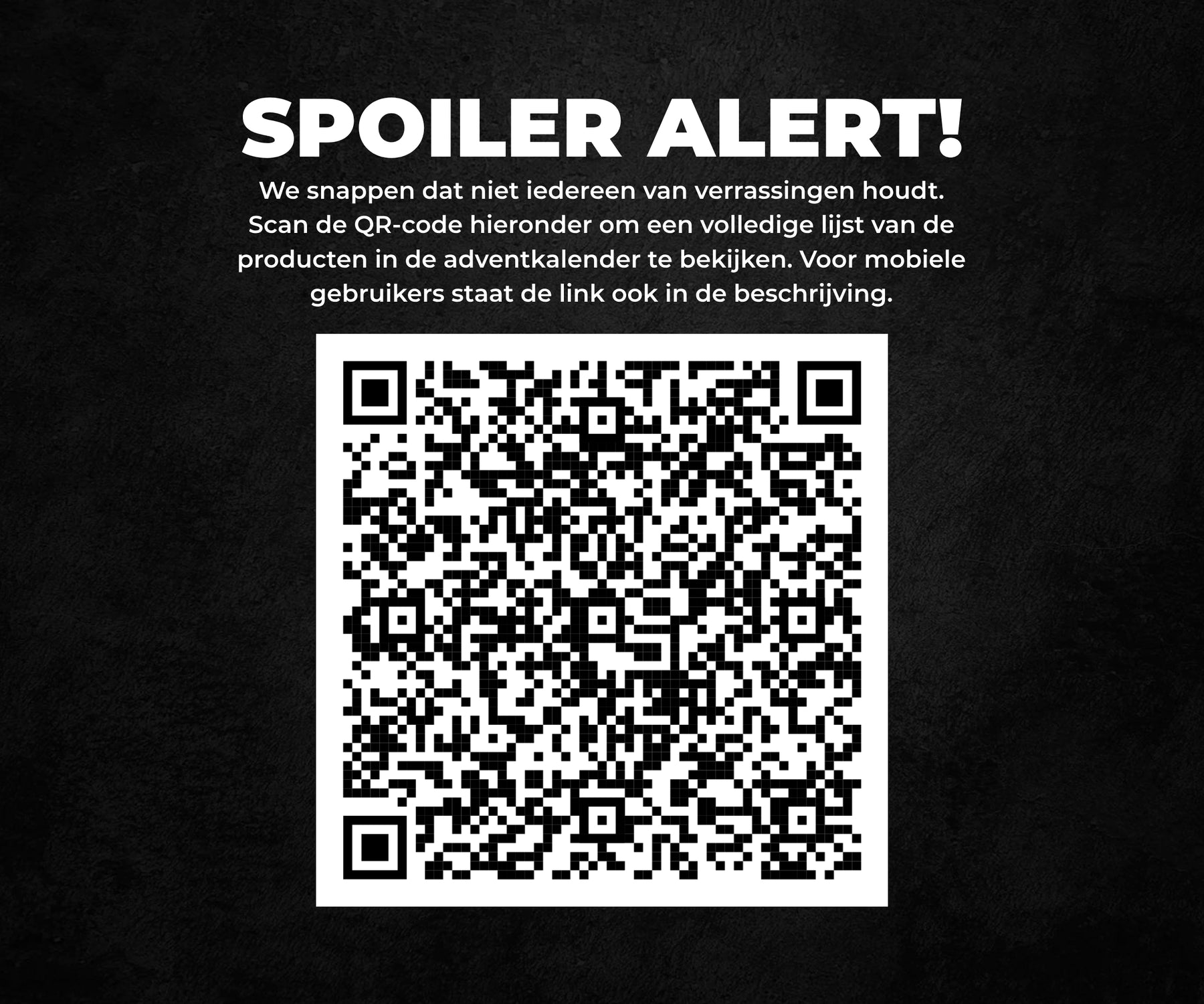 We snappen dat niet iedereen van verrassingen houdt. Klik op de link hieronder om een volledige lijst van de producten in de adventkalender te bekijken. Houd je van een verrassing? Vermijd dan deze link!