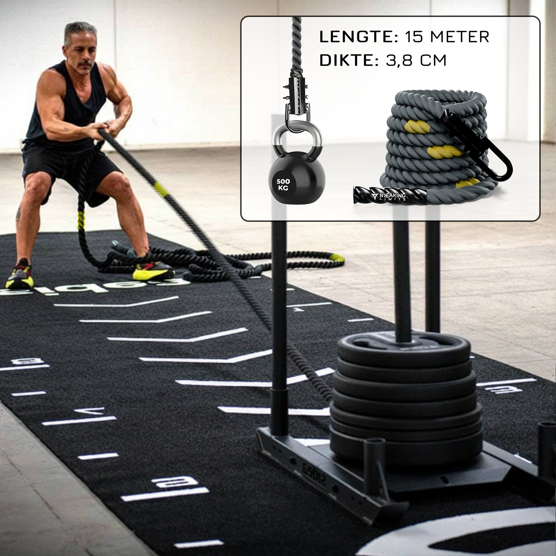 De Breaking Limits Sled Rope is ontwikkeld voor zware sled pulls waarbij kracht, techniek en uithoudingsvermogen samenkomen.